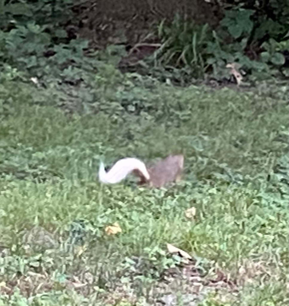 A flick of white-blond tail, and I stop. Grey-brown pine squirrels with hints of red in their fur (“Pineys,” my grandmother called them) dart through the grass so often I’ve stopped noticing them. Until the blond tail. I didn’t know that was possible on a grey-brown-red piney body. I grab my camera, wanting to capture the novelty. An unleased terrier wants to grab it, too. The dog rushes Blondie, who scales the nearest walnut tree. I return to the tree often and sometimes see the striking tail nearby, but rarely for very long. I keep my camera ready.